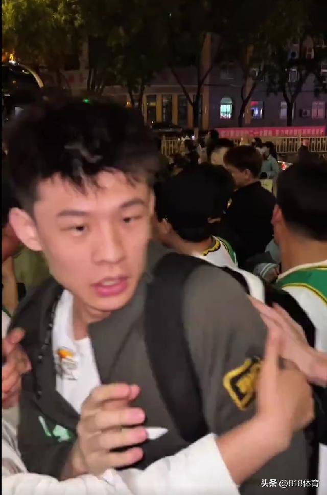 赛后酒店门口的球迷过于热情,王岚嵚和鄢手骐先后下大巴,大巴门前,一位球迷大妈太过激动,直接拉着了王岚嵚,还冲他喊着,“鄢手骐,鄢手骐,鄢手骐。”