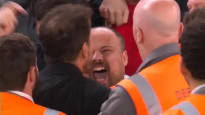 比赛最后时刻,范戴克在第92分钟打入制胜头球,引发安菲尔德全场的狂热庆祝。然而,场边的紧张气氛却在赛后被进一步放大。西蒙尼在比赛过程中多次与位于教练席后方的利物浦球迷发生言语冲突。