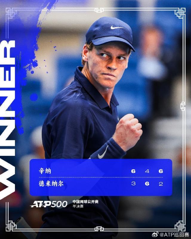 中网再冲冠!辛纳2比1德米纳尔晋级男单决赛,连续3年晋级中网决赛
